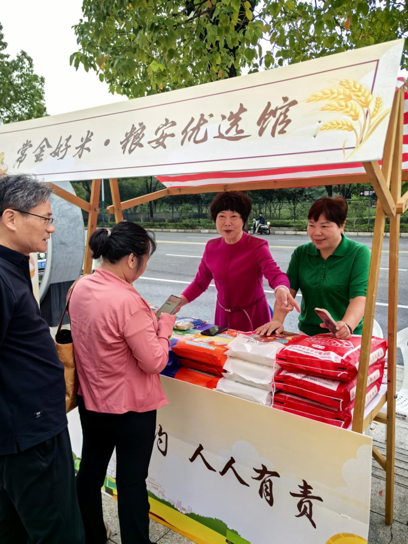 活动中,徐亚红带领工作人员向现场群众展示常金米业优质大米产品,热心为群众科普各类大米的知识以及家庭储粮与防霉变小技巧。印有“常金大米”字样的捐助和咨询摊位前,市民们络绎不绝,大家边尝边问价,点赞不断,纷纷表示通过活动增进了对粮食生产知识的了解,要从自身做起,珍惜每一粒粮食,践行绿色生活理念。