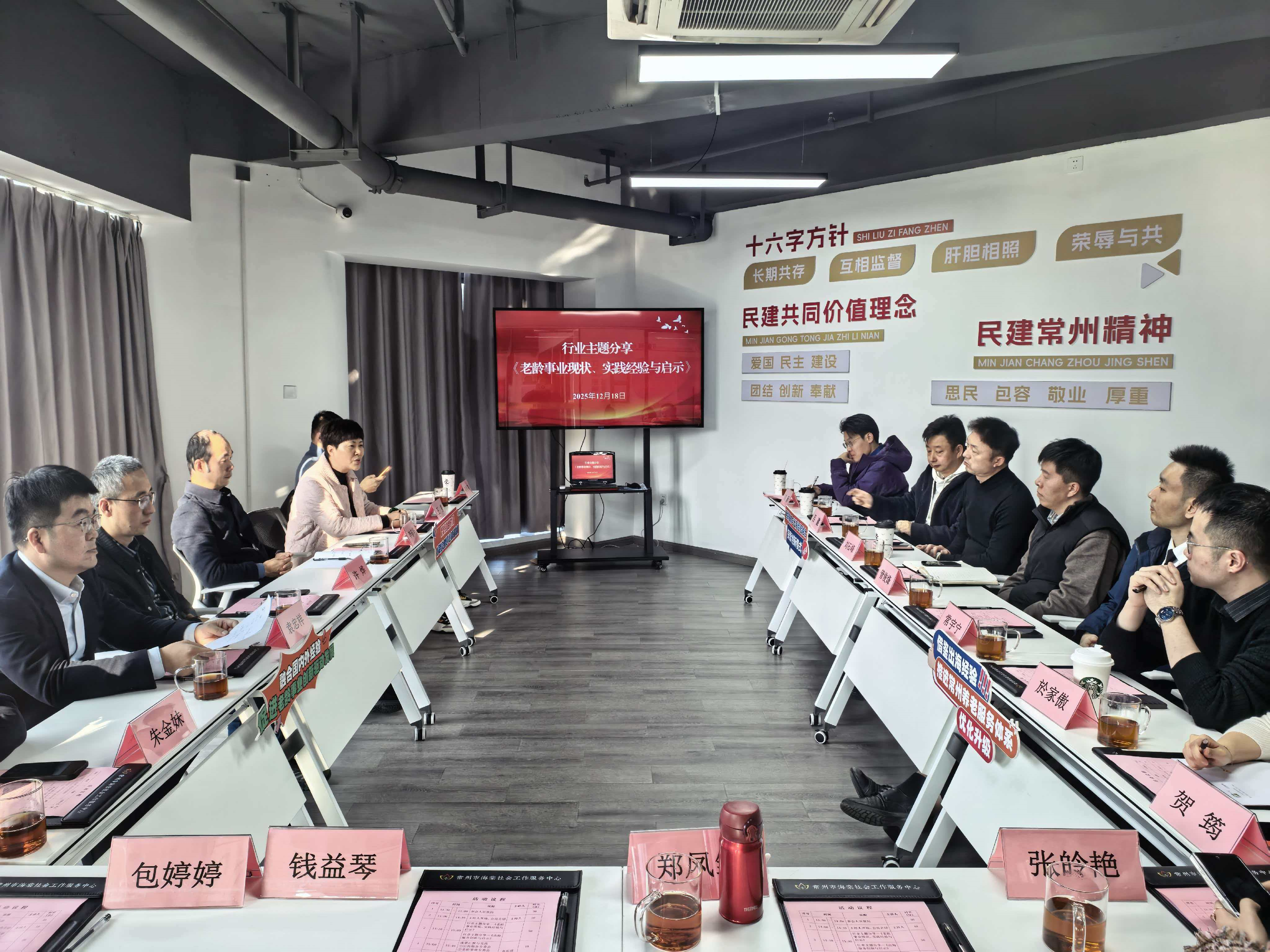 为进一步整合专委会资源之优势,拓宽履职之视野,凝聚服务常州高质量发展的磅礴合力,12月18日,民建常州市委会老龄事业专委会与出海服务专委会于河海商务大厦老龄事业专委会“会员之家”联合举办结对共建交流座谈会。与会会员齐聚一堂,就各自核心职能、资源禀赋及合作前景展开深入交流。民建常州市委会秘书长李东华出席活动。